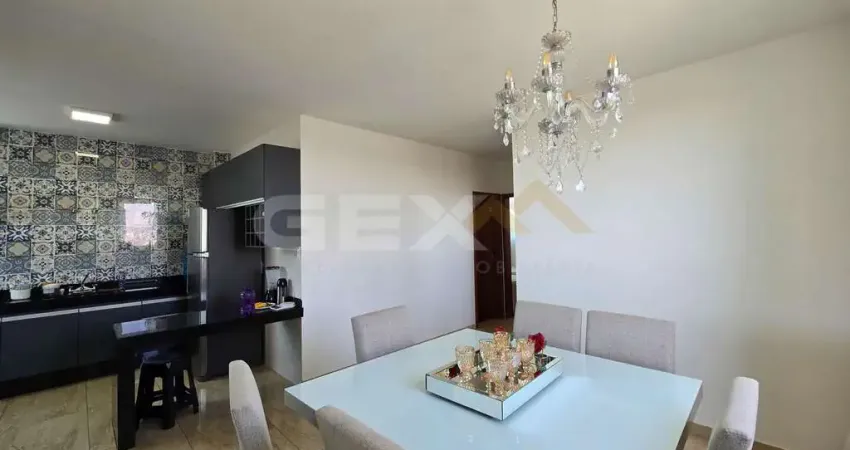 Vende-se apartamento com 3 quartos, sendo um suíte com armários planejados, sacada, sala, cozinha com armários planejados e bancada de serviço, banheiro social e terraço privativo. O elevador acessa ambos os 2 pavimentos e o apartamento conta com 2 vagas de garagem.