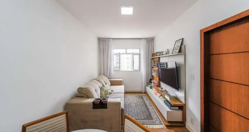 O apartamento passou por uma reforma recente e oferece uma sala de estar aconchegante, já com cortina, 3 quartos com persiana, sendo 1 suíte com varanda e equipada com armário e blindex. O banheiro social também conta com armário e blindex.