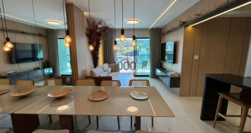 Apartamento 3 quartos sendo 1 suíte, varanda gourmet integrada com a sala, cozinha americana, banheiro social, área de serviço, 2 vagas de garagem paralelas
