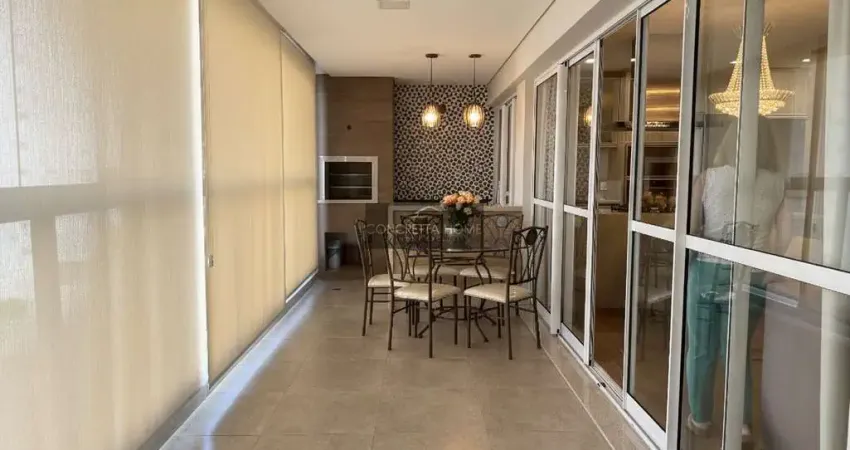 3 suites plenas, sala para 3 ambientes, cozinha gourmet com ilha, sacada gigante com churrasqueira e com cortinha de brindex, cortinha retratril