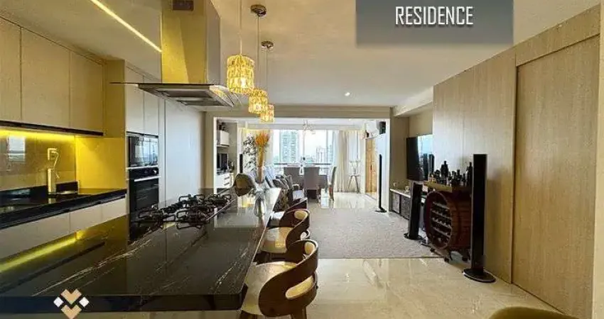 O imóvel apresenta sala ampla com varanda estendida, proporcionando ambiente aconchegante e arejado. A cozinha é espaçosa e conta com móveis modulados, além de área de serviço e banheiro de serviço. O apartamento dispõe de três suítes confortáveis, atendendo famílias que buscam espaço e privacidade.