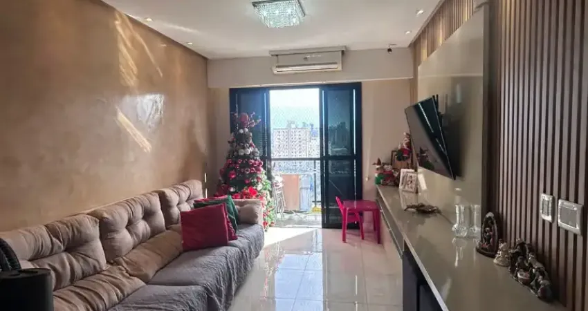O imóvel possui 3 quartos, sendo 1 suíte, sala ampla com sacada, banheiro social, cozinha, dependência de empregada com banheiro de serviço e 1 vaga de garagem.