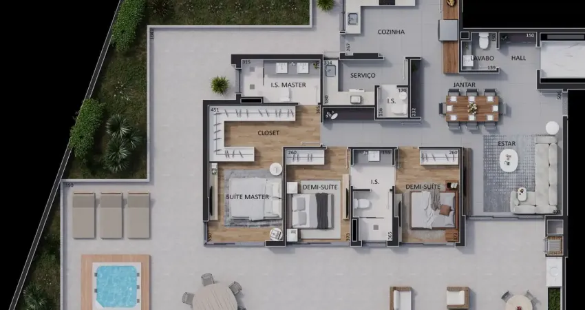 Planta inteligente e funcional — 117 m² privativos