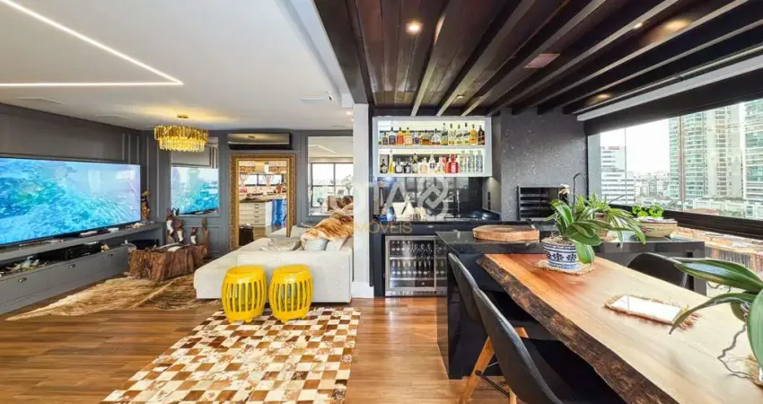 A cozinha é equipada com eletrodomésticos Elettromec, adega e cervejeira, além de triturador de alimentos na pia. A suíte master é um destaque à parte, com closet espaçoso, banheiro Sr. e Sra., piso aquecido, toalheiro aquecido e espelhos com desembaçador.