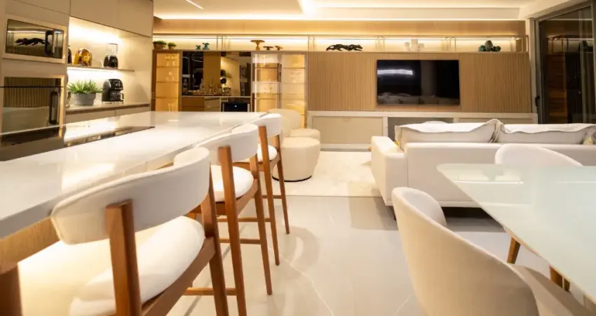 O apartamento está finamente mobiliado e equipado com ar condicionado LG de última geração em todos os ambientes, automação completa de som, luzes, ar condicionado e cortinas, com dispositivo “Alexa' controlados por aplicativo ou tablet; home theater, aquecimento no piso dos banheiros, toalheiro térmico na suíte master, desembaçador de espelho em todas as suítes, churrasqueira revestida em inox com kit elevatório elétrico, sala e cozinha revestidos em mármore branco Paraná, eletrodomésticos linha Electrolux Home Pro, piso na área íntima de madeira maciça estruturada, móveis soltos com peças assinadas (Masotti), móveis fixos linha Todeschini Premium, aquecedor de passagem de última geração, metais Deca, elevador TKE com biometria ou senha com desembarque direto no apartamento, todas as suítes face norte.