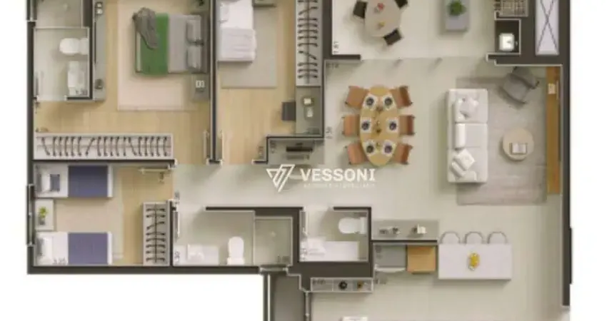 Com 108m², este apartamento oferece 3 dormitórios, sendo 1 suíte, e um ambiente perfeito para você e sua família. A sala para dois ambientes é espaçosa e ainda tem espaço para um home office, ideal para quem busca conforto e praticidade no dia a dia.