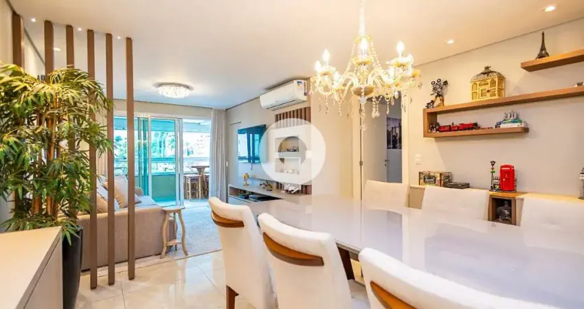Apartamento elegante, moderno e com arquitetura atemporal, totalmente planejado e com ambientes muito bem distribuídos. São 105 m² privativos, com 3 quartos, sendo 1 suíte, sendo que um dos dormitórios foi inteligentemente adaptado para closet e escritório, agregando ainda mais funcionalidade. O imóvel conta com 3 banheiros completos e 1 lavabo, cozinha moderna e prática com lavanderia separada, além de ar-condicionado na sala e na suíte. Com face norte e leste, recebe excelente iluminação natural e ventilação ao longo do dia. A sacada com churrasqueira e vista para rua tranquila complementa o conforto do espaço. Possui ainda 2 vagas de garagem e espaço para depósito, além de central de gás.