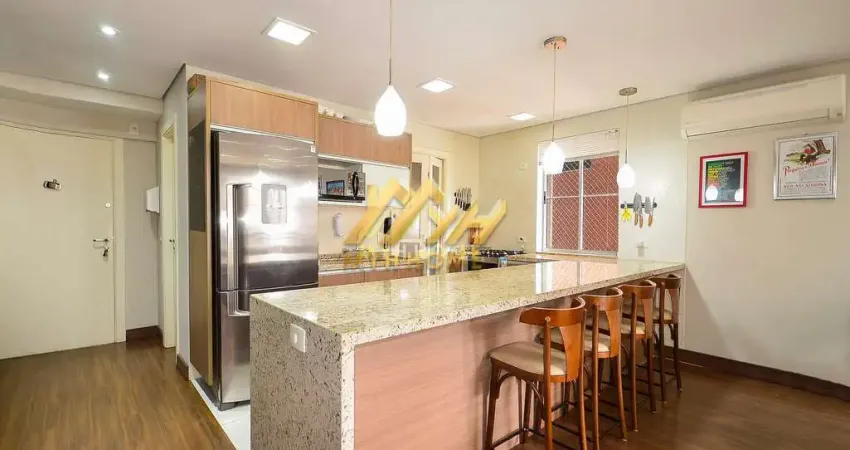 Living integrado com ar condicionado, cozinha completa dispondo de amplo balcão com fogão, geladeira e micro ondas e dois ambientes de salas , lavabo e área de serviços.