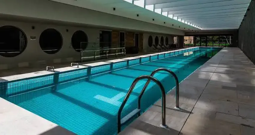 • O espaço foi pensado para proporcionar ao morador a sensação de estar em uma piscina aberta com o conforto da climatização.