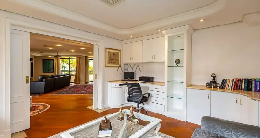 Apartamento Garden Duplex exclusivo com 462m² de área útil, 70 m² de garden privativo e 620 m² de área total registrada em matrícula, único na configuração no condomínio, oferecendo a sensação de uma verdadeira casa suspensa no coração de Curitiba. São 3 suítes amplas (master com closet e hidromassagem dupla), ambientes integrados, lareira, escritório, home cinema, varanda fechada com vidro, cozinha planejada com despensa, área de serviço com dependência completa e 4 vagas de garagem. No pavimento inferior, destaque para o espaço gourmet completo com churrasqueira (parrilla), adega, sala de jogos e jantar integradas ao garden privativo de 70 m² com deck e piscina exclusiva um diferencial raríssimo na região central. Condomínio com apenas um apartamento por andar, duas torres com 9 unidades cada, segurança 24h e infraestrutura completa de lazer, incluindo piscinas, quadra, salão de festas e áreas verdes. Sofisticação, privacidade e lazer em um único endereço.