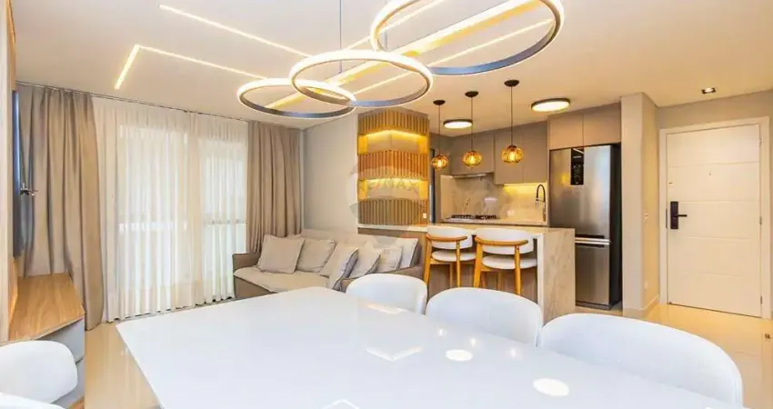 Com quase 100m² privativos, este apartamento se destaca por estar mobiliado com móveis
