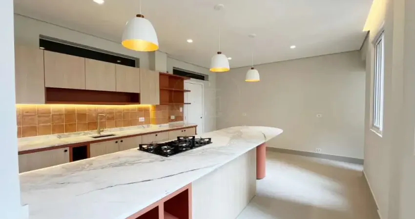A cozinha é um verdadeiro espetáculo à parte. Com uma ilha quente incrível, já equipada com um cooktop de cinco bocas e com acabamentos em mármore Michelangelo, contém infraestrutura para a instalação de máquina de lavar louças e forno elétrico. Os armários em tons terrosos trazem charme e aconchego ao ambiente, ideal para as refeições em família.
