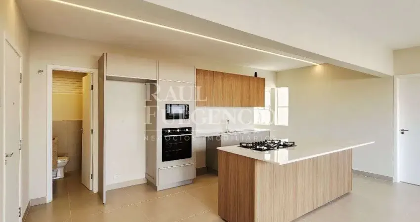 Acabamentos de alto padrao, excelente aproveitamento de espaco, ambientes iluminados, integracao entre sala e cozinha, marcenaria planejada e Ilha em marmore com cooktop, torre quente com forno e micro-ondas.