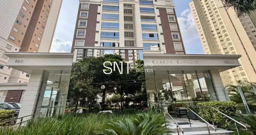 A Soneto imóveis anuncia apartamento à venda no Edifício Champs Elysees, em frente a praça Pé Vermelho, na Gleba Palhano. Com 130 m² privativos, 3 suítes, sacada ampla com churrasqueira e acesso a área de serviço, completo em armários, 2 vagas de garagem.