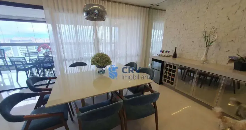 Dispõe de 3 dormitórios, todos suítes , cozinha planejada, 4 wc social, área de serviço, sala dois ambientes e sacada com churrasqueira.