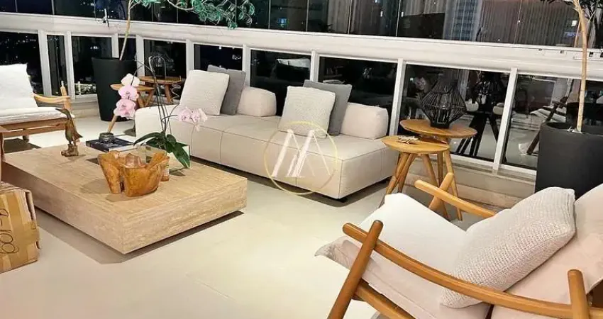 Este apartamento de 245m² privativos é um verdadeiro espetáculo de design e elegância. Entregue finamente decorado, com porteira fechada, conta com acabamentos de altíssimo padrão: madeira, mármore, espelhos, laca, iluminação estratégica e móveis sob medida Bomtempo em todos os ambientes. A sala ampla, com elementos em linho, espelho e painel em mármore, se integra à sacada já fechada em screen glass, formando um espaço acolhedor e impactante.