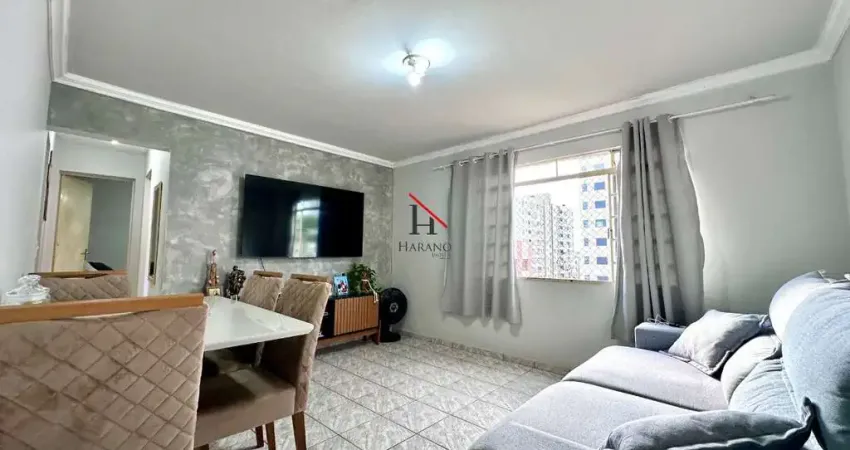 Apartamento com 3 quartos, sala para 2 ambientes, banheiro social, cozinha, área de serviço e 1 vaga de garagem. O imóvel possui armários na cozinha e sanca em gesso.