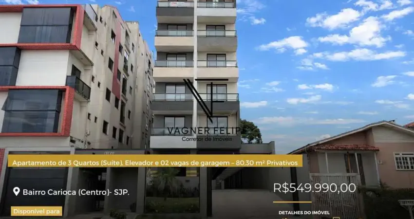 Apartamento de 3 Quartos (Suíte), Elevador e 02 vagas de garagem – 80,30 m² Privativos- Centro