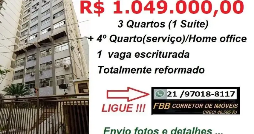 Icaraí- Mariz e Barros- 1ª Quadra da Praia- 120m² -R$ 1.049.000,00- Apto de Fundos, Claro e arejado- Sala para 2 ambientes, 3 quartos (1 suíte)- OBS: Sala e Quartos preparado para ar Split- 1 Lavabo ( Os 3 BHs com janelas), 4° Quarto ou Home Office com janela, Cozinha Ampla integrada à Sala com Cooktop e armários, Área de serviço separada, Aquecimento a gás (banheiros e cozinha), Apto. reformado com piso em porcelanato e com elétrica e hidráulica novas em todo o apto.- Fechadura Digital- 1 Vaga de Garagem na escritura e solta. Aceito e resolvo seu Financiamento Bancário- Atendo somente pelo telefone ou WhatsApp: 21 / 9 - CÓD. AP00260.