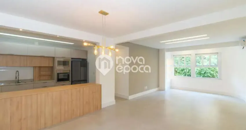 Leopoldo Miguez, totalmente reformado com vista verde, desocupado, andar alto, frente, sol da manhã, claro e arejado. Lindo apartamento, composto de amplo salão em porcelanato com 3 ambientes, iluminação indireta e split, lavabo, 3 quartos com splits, sendo 2 suítes (1 com armário). Cozinha americana planejadíssima com geladeira, cooktop, forno e microondas embutidos, área de serviço e dependências completas. 1 vaga escriturada e portaria 24h. Parte hidráulica e elétrica novas. Nada a fazer! Oportunidade única! Documentação perfeita. Agende sua visita! e0b65