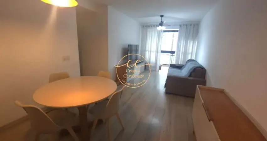 Sala em 2 ambientes, varanda com cortina de vidro, cozinha planejada e área de serviço planejada, banheiro social, 1 suíte com armário planejado e 2 quartos com móveis planejados.