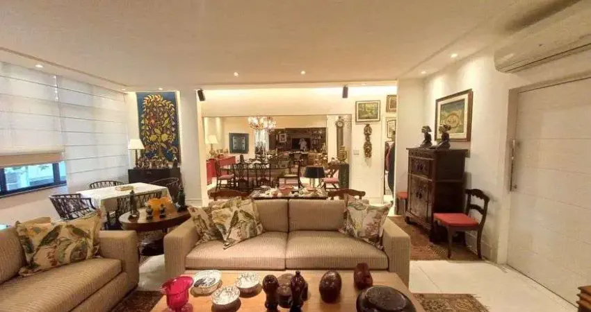 Suntuoso apartamento com 150m², dividido em Salão em três ambientes, três quartos originais, atualmente com dois quartos e uma suíte, e um dos quartos revertido para mais um ambiente de sala, lavabo, banheiro social, copa-cozinha planejada com ar condicionado, área de serviços e dependências completas. Imóvel totalmente reformado por arquitetos e engenheiros famosos, fino acabamento, com armários de primeira linha, janelas acústicas em metalon e com blindagem, instalações novas. Uma vaga de garagem em escritura.