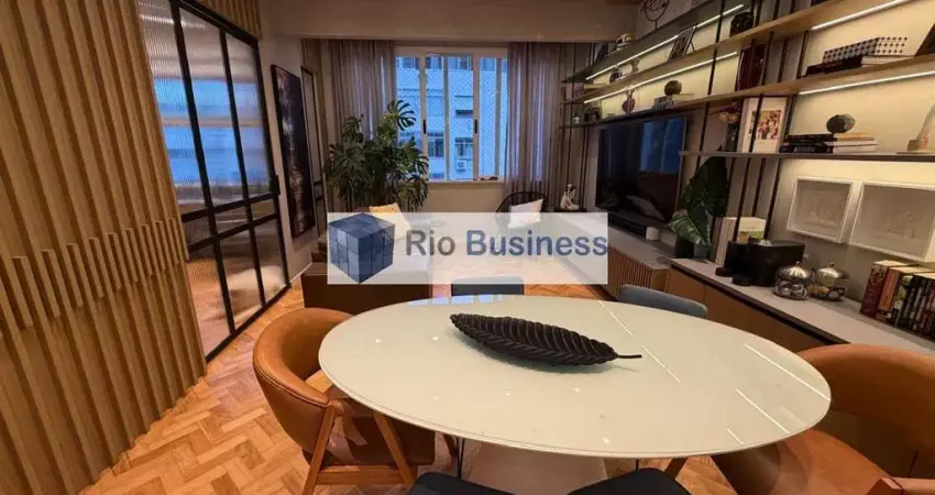 Excelente oportunidade no Leme, finamente reformado, sala integrada com escritório, cozinha americana toda equipada, 3 quartos com armários planejados, 1 suíte, banheiro social, 1 vaga