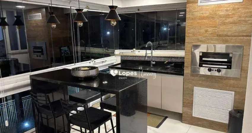 A sala é espaçosa, perfeita para compor diferentes ambientes com elegância. O imóvel é totalmente montado com belíssimos armários planejados, acabamento de qualidade e excelente aproveitamento de espaço.