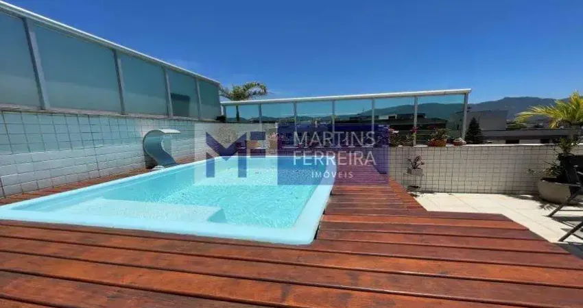 Recreio dos Bandeirantes: Lindíssima cobertura duplex, em localização diferenciada (Rua sem saida) junto ao comércio, transporte e acesso rápido a praia. Composta de: 1° Pvimento: Amplo salão em 03 ambientes, varandão, copa-cozinha (conceito americana), área de serviço e banheiro de empregada (transformado em dispensa), lavabo, 03 amplas suítes (banheiros com armários e blindex) quarto de empregada (revertido a closet). 2° Pavimento: Amplo terraço com churrasqueira, forno, bancadas, piscina com deck de madeira, banheiro e depósito para gardados. 03 vagas,