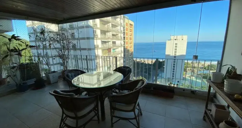 Maravilhoso apartamento em andar alto com vista mar em São Conrado. São 129m² com salão, ampla varanda com cortina de vidro, 3 quartos sendo 1 suíte, banheiro social, cozinha planejada com área de serviço e dependência completa. Piso em tábua. Armários. 2 vagas de garagem. Prédio colado ao Fashion Mall com lazer super completo e portaria com segurança 24 horas localizado a 9 minuto do metrô São Conrado.