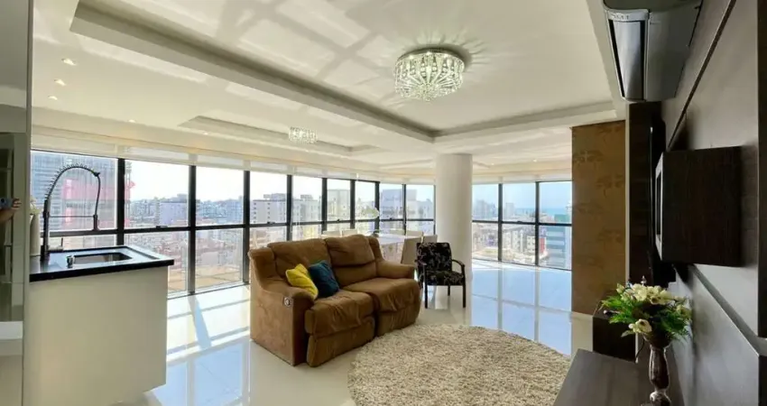 Amplo apartamento de frente para principal avenida de Capão da Canoa, em andar alto, Leste Norte, composto por 3 dormitórios, suíte, banho social, living em 3 ambientes, sacada de frente com vista livre da cidade, churrasqueira, cozinha, área de serviço, apartamento todo mobiliado, climatizado, todo rebaixado em gesso, 2 box privativo para os carros. Edifício residencial e comercial com entradas separadas, hall decorado, 2 elevadores digitais, portão e porteiro eletrônico, zeladoria permanente.