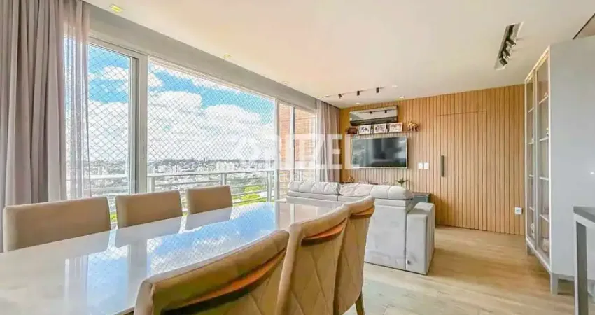 O apartamento semimobiliado dispõe de 118 m² privativos, com três dormitórios sendo uma suíte e duas suítes americanas. O living integrado proporciona amplitude, conforto e sofisticação, valorizado por uma sala envidraçada que garante ainda mais iluminação natural e uma vista de tirar o fôlego.