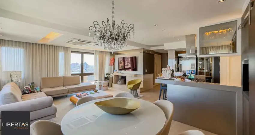 Com 126,26 m² de área privativa, o apartamento dispõe de 3 suítes, sendo a suíte master com closet e vidros duplos, garantindo conforto e isolamento acústico. As outras suítes seguem o formato americano, o que proporciona ainda mais praticidade e privacidade. O imóvel conta também com lavabo, lareira e churrasqueira para momentos de lazer e confraternização. A lavanderia é separada e possui banheiro de serviço, garantindo mais comodidade no dia a dia.