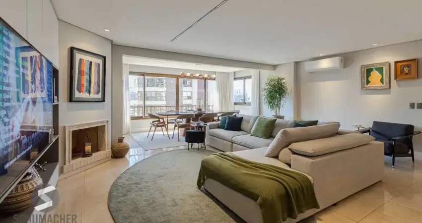 Com 168m² privativos, o imóvel foi finamente decorado, oferecendo uma atmosfera elegante e acolhedora. A área social é ampla, com vista maravilhosa, lareira, churrasqueira e lavabo. São 3 dormitórios, sendo a suíte com um closet espaçoso.