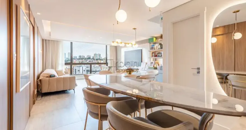Excelente apartamento, living para 3 ambientes com lareira, esquadrias piso teto que proporcionam muita iluminação, lavabo, churrasqueira, ampla cozinha mobiliada, área de serviço completa e separada .