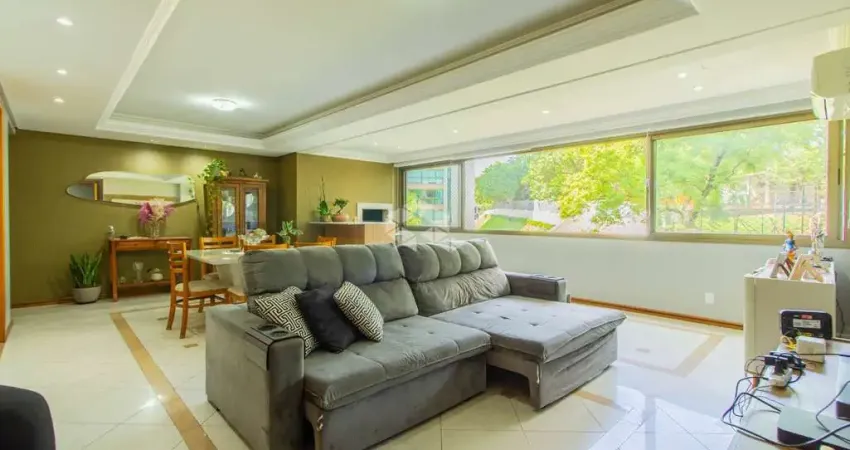 Apartamento semimobiliado de 107 m², 3 dormitórios sendo 1 suíte, living para 2 ambientes, 2 vagas de garagem, lareira, lavabo, churrasqueira, cozinha mobiliada, área de serviço separada e banheiro social. Orientação solar Oeste. Muita luz natural e ventilação direta.