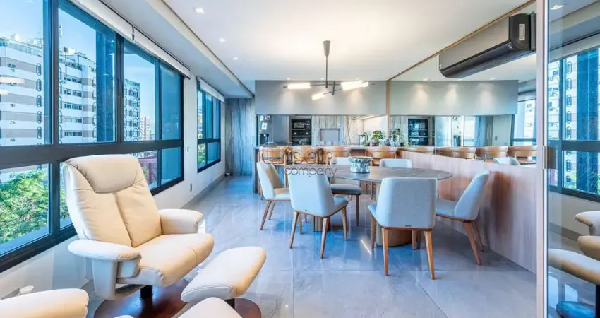 Um verdadeiro refúgio urbano com living espaçoso e integrado para dois ambientes bem definidos, lareira ecológica, amplas janelas que proporcionam luminosidade natural abundante, espaço de jantar para até 6 pessoas e um charmoso lavabo. A cozinha americana é um destaque à parte ? equipada com móveis planejados de alto padrão, churrasqueira e área de serviço independente.