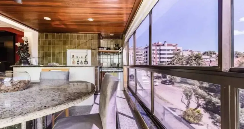 Apt. semimobiliado com 3 dom. 1 suíte, atualmente conta com 2 dormitórios, pois o terceiro foi integrado e transformado em closet e gabinete, proporcionando maior amplitude aos ambientes. Banheiro social com ventilação natural. Living amplo para 3 ambientes, com sacada fechada integrada ao living, churrasqueira e lareira. Cozinha montada, com área de serviço individual e banheiro auxiliar. Possui 2 vagas de garagem cobertas e escrituradas.
