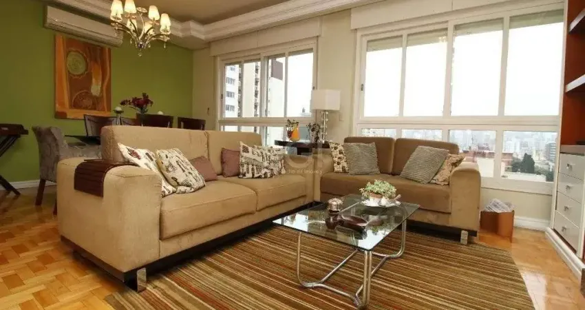 Excelente apartamento de 3 dormitórios, sendo 1 suíte em localização privilegiada no Bairro Petrópolis. Living 2 ambientes com lareira, dependência de empregada. 113m² privativos, 3 vagas de garagem com depósito. Excelente apartamento amplo e ensolarado! Condomínio comgás central e salão de festas. Edifício com a fachada reformada. Agende já sua visita.