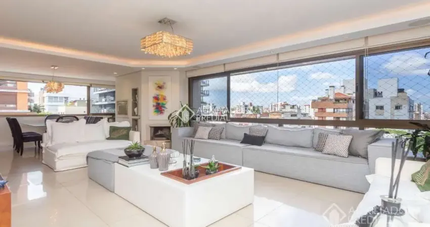 Maravilhoso apartamento em alto padrão construtivo, 2 apartamentos por andar, amplo apartamento com 150m² privativo, ótima posição solar, 3 dormitórios sendo uma suíte com closet, 2 suites americanas ,living enorme finamente decorado todo em porcelanato com lareira e churrasqueira, cozinha com copa, lavabo, área de serviço, depósito, banheiro auxiliar, dependência de empregada, 2 vagas de garagem, condomínio com piscina, salão de festas, fitness, portaria 24 horas, circuito de tv, baixo valor condominial. Então não perca tempo e agende logo uma visita com o corretor licenciado!.