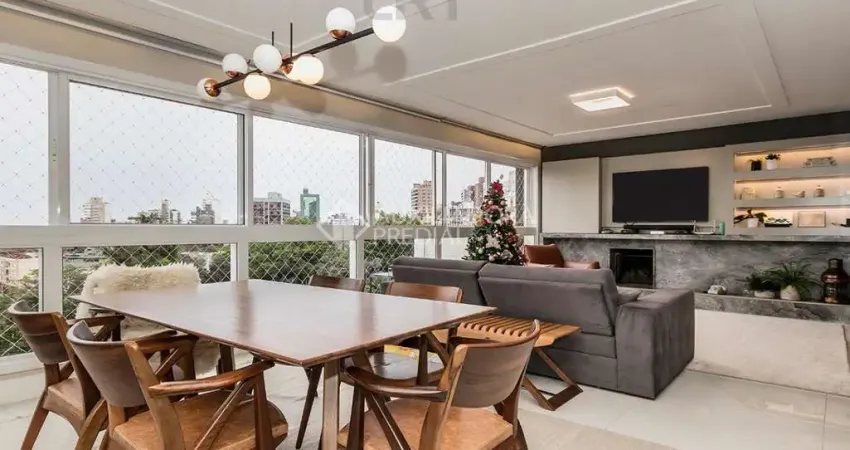 Apartamento no bairro Petrópolis em Porto Alegre. Possui 162m² privativos, 3 suítes, frente a fundos, lareira, churrasqueira, lavabo, dependência completa e 3 vagas de garagem com depósito. Infraestrutura completa. Hall de entrada sofisticado com pé direito duplo. Em frente a uma praça, no ponto mais alto da cidade. Junto ao trecho chamado de Nova Carlos Gomes, próximo ao futuro shopping Belvedere.