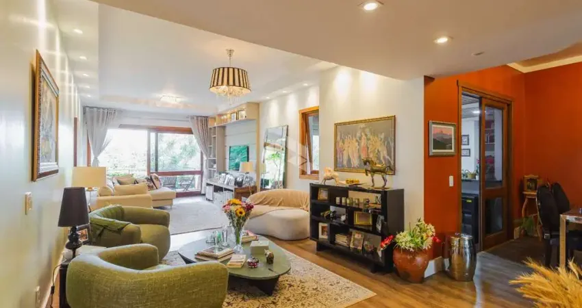Apartamento, 3 dormitórios, 1 suíte com closet e 2 vagas, no bairro Petrópolis, com 209 m², ampla sacada com jardim e mobiliado. Conforto, estilo e vista encantadora.