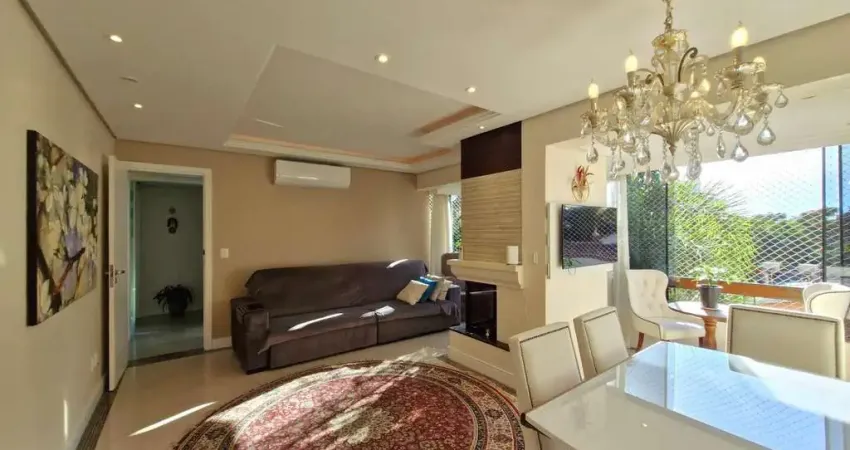 O apartamento é composto por 3 dormitórios sendo 1 suíte com sacada, amplo living com sacada integrada para 3 ambientes estar/jantar e espaço com churrasqueira, vista verde permanente e lareira. Cozinha independente com área de serviço separada. Orientação solar leste/oeste, excelente ventilação e luz natural, uma vaga coberta escriturada. O prédio conta com elevador, interfone, portão eletrônico.
