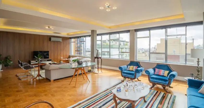 Urban Company Select vende apartamento no Bairro Rio Branco, com 3 (três) dormitórios, 2 (duas) suites, semimobiliado, em localização privilegiada, com 219m² de área privativa, living com 3 (três) ambientes. Suítes confortáveis, armários embutidos. Apartamento reformado com muito bom gosto, ideal para quem busca praticidade e estilo. Imóvel com 2 (duas) vagas de garagem. Antecipe-se e agende sua visita hoje mesmo!!!