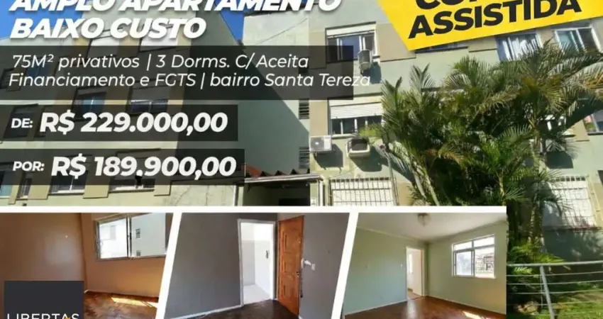 Apartamento amplo com 75 M² de 3 dormitórios e vaga (link removido)óvel amplo de 3 dormitórios, living dois ambientes, banheiro social Ótimo de circulação de ar e ensolarado, e possui vaga por convenção coberta. Condomínio com portaria virtual, circuito de segurança com câmeras, salão de festas com churrasqueira, playground com ampla área verde e sem elevador. Fácil acesso às principais ruas e (link removido) em Porto Alegre, este apartamento oferece dois quartos, + Dormitório auxiliar com (link removido)ço acolhedor e funcional. A cidade de Porto Alegre é conhecida por sua rica cultura e qualidade de vida, e este imóvel está situado em uma área que permite fácil acesso a diversas atraçõ(link removido) proximidades, você encontrará o Morro Menino Deus, perfeito para caminhadas e momentos de lazer ao ar livre. Além disso, o Estádio Beira-Rio está a uma curta distância, oferecendo uma excelente opção para os amantes de esportes e eventos. A localização estratégica do apartamento garante que você esteja sempre perto de tudo o que Porto Alegre tem a oferecer, desde opções de entretenimento até serviços essenciais. ACEITA FINANCIAMENTO E USO DE FGTS Estudamos seu imóvel no negócio. Além deste, mais de 25 mil opções em nosso site. #xD;