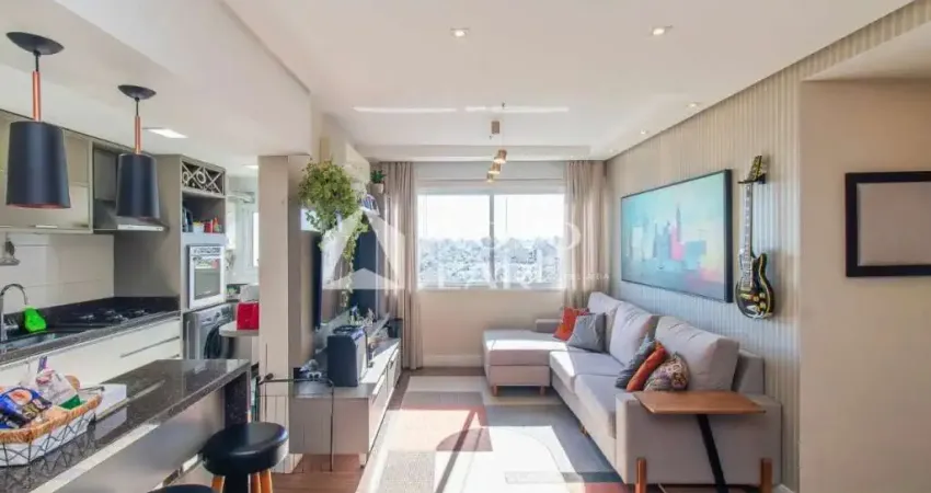 Apartamento 3 dormitórios, sendo1 suíte, living amplo e arejado. Excelente posição solar: ambientes bem iluminados e ventilados. Cozinha planejada e funcional (cozinha americana), semi-mobiliado. 2 vagas de garagem. Água quente, ar condicionado, área serviço, armário embutido, churrasqueira, sala com armários, sala jantar, split, vista panorâmica.