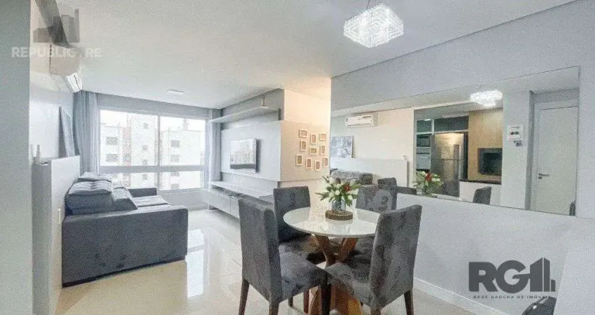 Este ótimo apartamento no Condomínio Grand Square oferece um espaço de 71 m² privativos, localizado em andar alto e semi mobiliado. Com 3 quartos, sendo 1 suíte, conta com uma sala ampla para 2 ambientes com rebaixe em gesso, um banheiro social, cozinha americana mobiliada com churrasqueira e área de serviço integrada. Os banheiros possuem box de vidro e há água quente na cozinha e nos banheiros. O imóvel é muito ventilado e iluminado, dispondo de uma vaga de garagem escriturada e coberta. O condomínio tem portaria 24h, elevadores, piscina adulto e infantil, salão de festas, gás central, academia, playground, quadra de esportes, quiosques com churrasqueiras e espaços de convivência. Está situado em uma região privilegiada, próxima da Av. Sertório, com comércio, escolas, transporte e todos os recursos nas proximidades. Aceita financiamento. Agende já uma visita.
