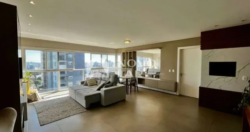 Apartamento de 3 dormitórios, sendo 01 suíte. A suíte tem vista definida e ampla, armários embutidos, banheiro com armário Dois dormitórios com armários e banheiro social. Os dormitórios possuem janelas em PVC e persianas eletrônicas. Sala de estar e jantar com churrasqueira , janela ampla em toda a extensão da sala em PVC com espera para cortina eletrônica, vista definida e lindo por do sol. Cozinha americana mobiliada com moveis de alto padrão e área de serviço separada e bem ventilada. 02 vagas de garagem coberta dupla.
