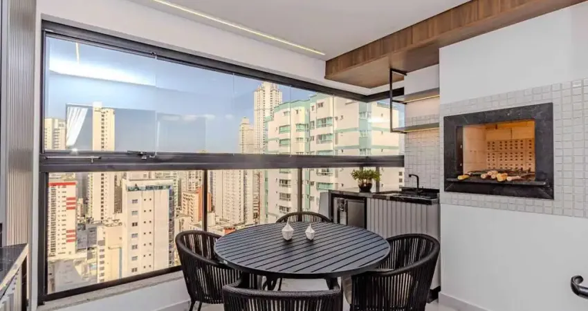 Apartamento mobiliado com sacada e churrasqueira no Centro de Balneário Camboriú.