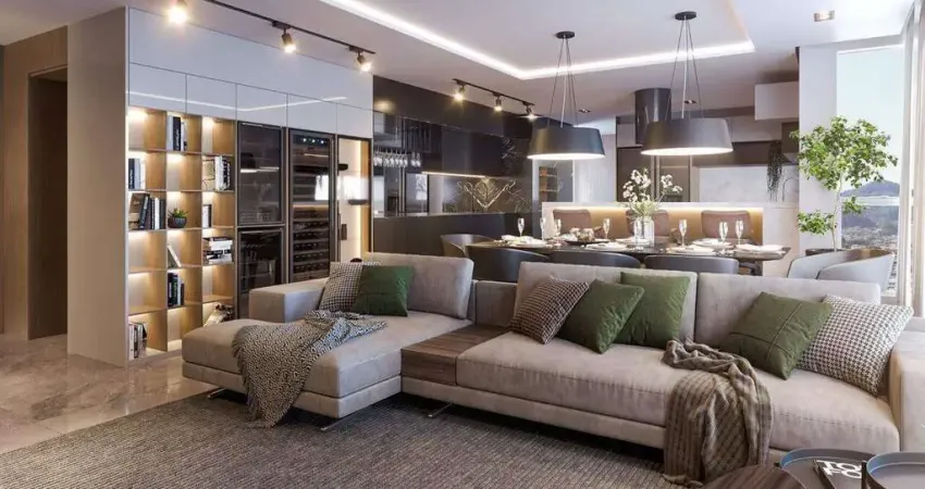 O apartamento conta com 125,31m² de área privativa e 238,48m² de área total, distribuídos em 3 dormitórios, sendo 3 suítes, além de 4 banheiros e 2 vagas de garagem, oferecendo espaço ideal para toda a família.